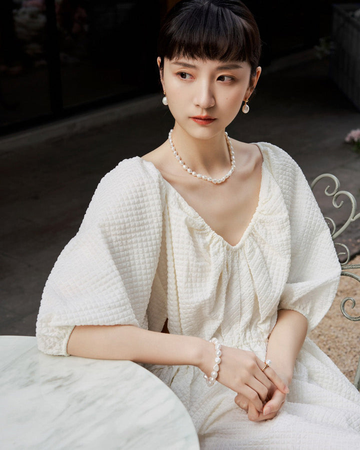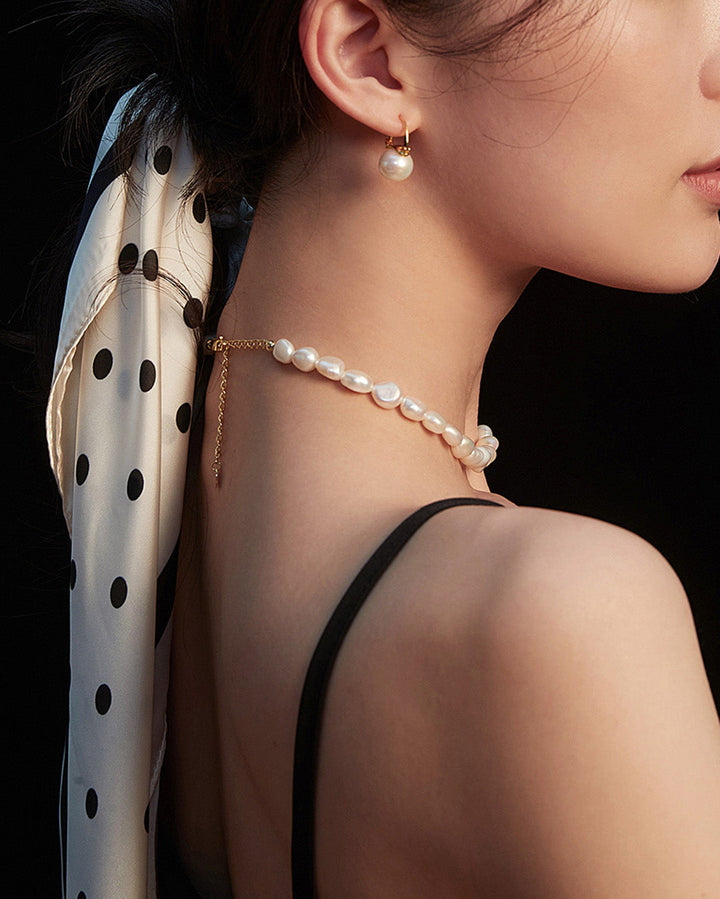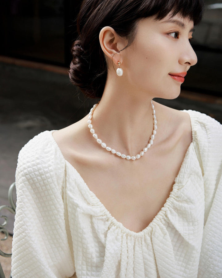 Paire with matching baroque pearl earrings to create a cohesive and sophisticated look.