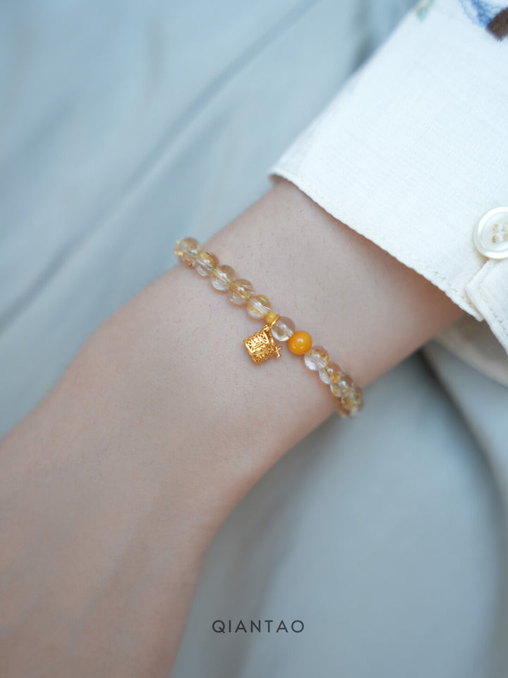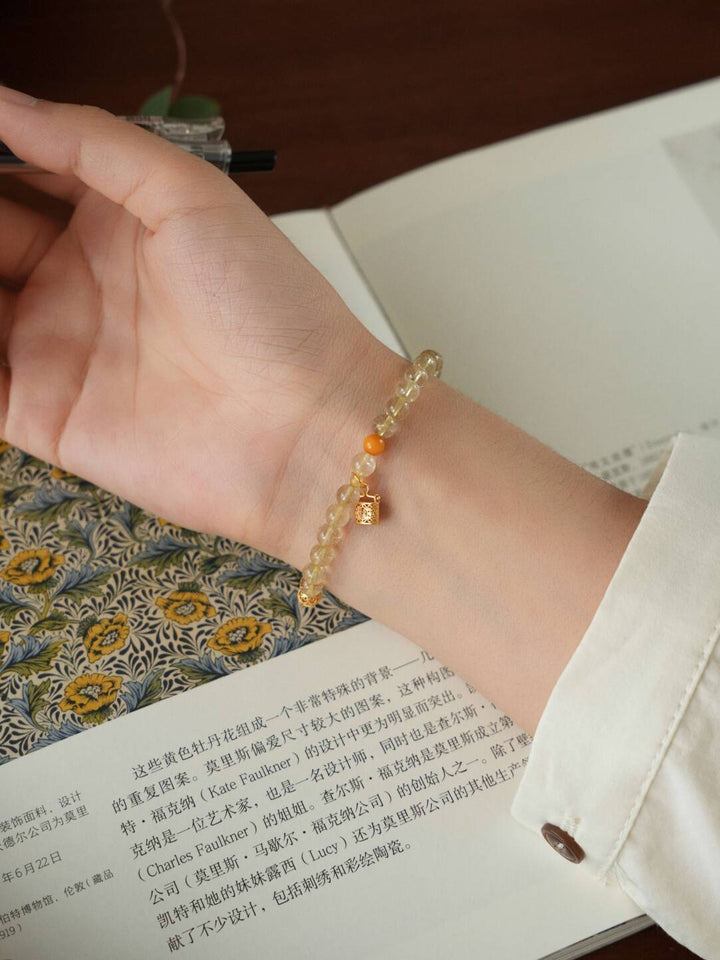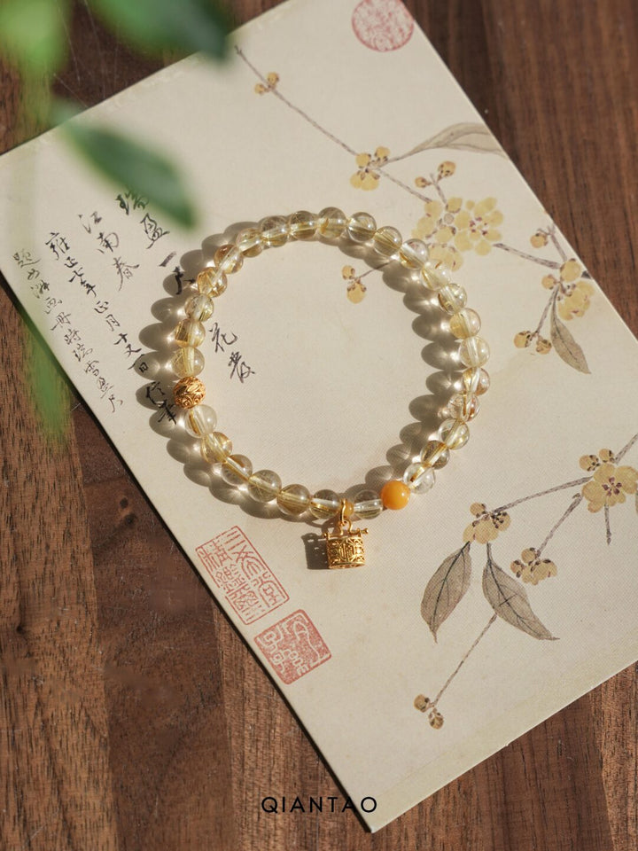 Chinese Style Natural Golden Rutilated Quartz Bracelet Yellow Crystal Wealth-Attracting High-End Bracelet